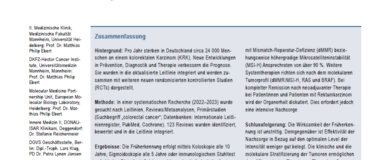 Klinische Leitlinie: Kolorektales Karzinom Diagnostik, Therapie, Vor- und Nachsorge Colorectal cancer—diagnosis, treatment, prevention, and long-term follow-up care