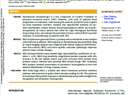Functional Precision Medicine Using MicroOrganoSpheres for Treatment Response Prediction in Advanced Colorectal Cancer JCO Precis Oncol10, e2500501(2026) DOI:10.1200/PO-25-00501